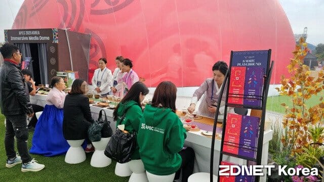 유혹(?)의 목소리가 기자의 발길을 붙잡았다. 아시아태평양경제협력체(APEC) 최고경영자(CEO) 서밋이 열리는 경주 예술의전당 바깥에는 한국 문화를 체험할 수 있는 ‘K-웨이브 플레이그라운드’가 마련돼 있다.