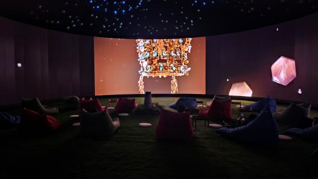 체험존 한편에는 잠시 쉬어갈 수 있는 휴식 공간도 마련돼 있다. 어두운 조명의 미디어 전시 공간에 비운백(빈백) 의자가 놓여, 누워서 휴식을 즐기는 이들도 보였다.
