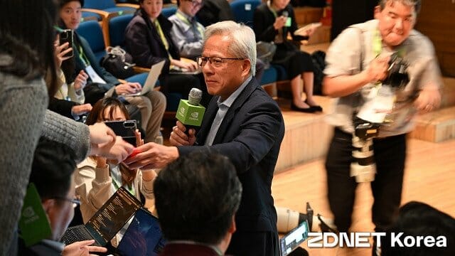 약 한 시간 동안 국내외 취재진의 질문에 답한 젠슨 황 CEO는 "컴퓨팅이 60년 만에 완전히 재설계되고 있다. 이제 시작된 AI 산업의 기회는 상상 이상이며 삼성전자와 SK하이닉스 두 파트너와 새로운 시대를 함께 열 것"이라고 말했다.