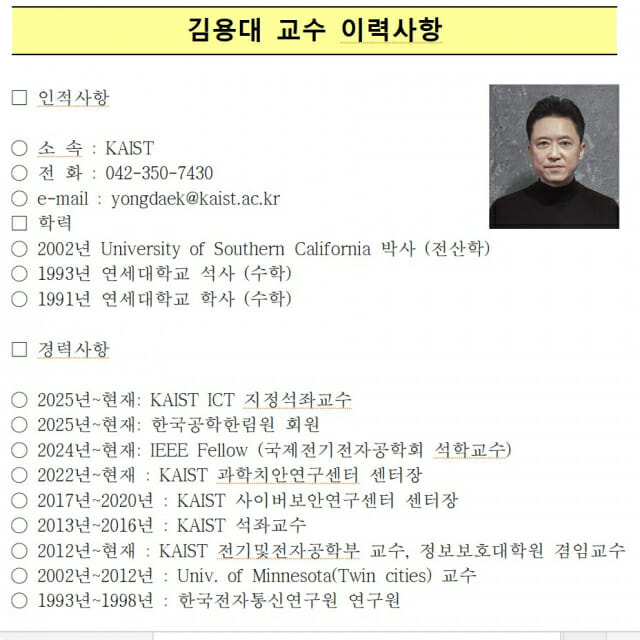 이번 연구는 교신 저자로 참여한 김 교수 외에 KAIST 전기및전자공학부 손민철, 김광민 박사과정이 공동 제 1저자로, 또 KAIST 전기및전자공학부 오범석 박사과정와 경희대 박철준 교수가 김 교수와 함께 교신저자로 참여, 지난달 14일 'ACM CCS 2025'에서 발표됐다. 논문 제목은