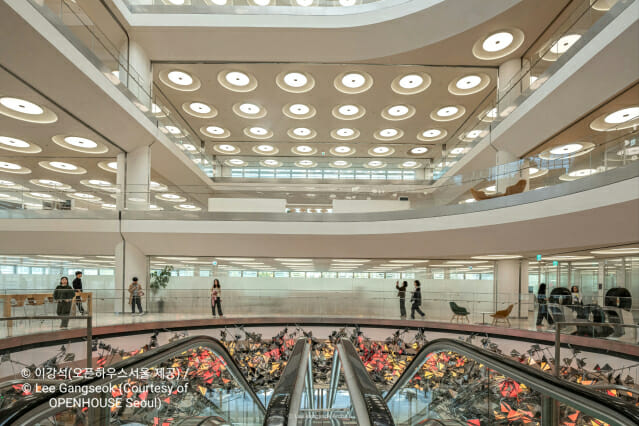 사원에서 임원에 이르기까지 모든 임직원이 자율좌석제를 기반으로 근무하며, 물리적·심리적 장벽을 최소화한 구조 속에서 유연하게 일하는 업무 혁신을 실현하고 있다. 또한 태양 고도와 일조량을 고려한 지능형 자연 차광 시스템을 적용해 쾌적한 근무 환경을 조성했다.