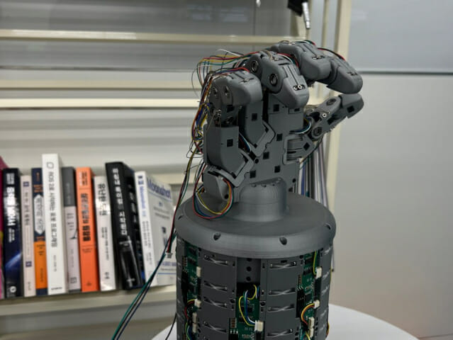 이 철학은 순응형 로봇 암과 500g·20자유도 유압식 초경량 손 설계로 구체화됐다. 손에는 자체 제작 촉각 센서를 80% 면적으로 투입했다. 0.01N(약 1g) 수준의 힘과 방향, 토크까지 감지한다.