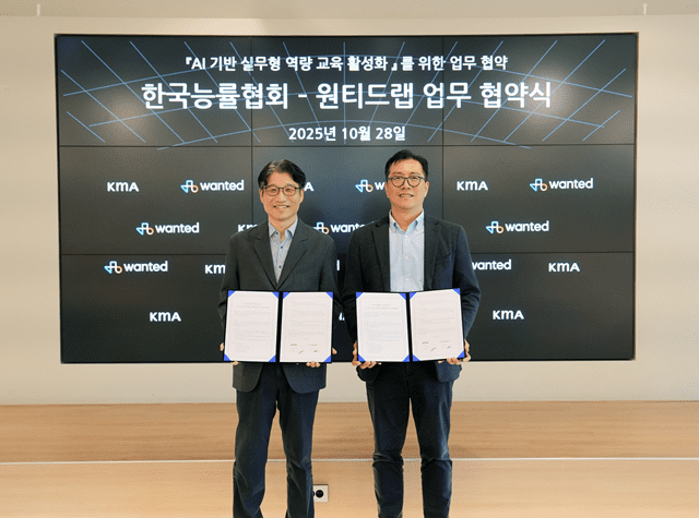 원티드랩은 KMA 한국능률협회(이하 KMA)와 ‘인공지능(AI) 기반 실무형 역량 교육 활성화를 위한 업무협약’을 체결했다고 4일 밝혔다.