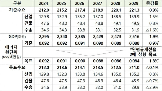 에너지원단위는 지난해 0.092toe/백만원에서 2029년 0.084toe/백만원으로 낮춘다는 방침이다.