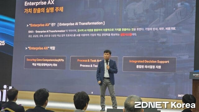 그는 "EAX는 데이터 제어, AI 학습, 에이전트 실행, 의사결정 통제 등으로 구성된 통합 체계를 통해 기업이 스스로 학습하고 진화하는 지능형 구조를 만드는 것"이라며 "AI를 스스로 가치를 창출하는 실행 주체로 전환하는 것이 산업 혁신의 다음 단계"라고 강조했다.