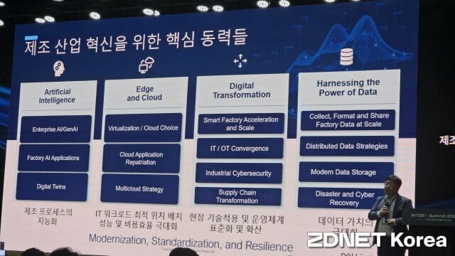 델 테크놀로지스 이영민 전무는 "AI 혁신은 데이터와 인프라의 결합에서 완성된다"며 "제조 현장에서 AI를 안정적으로 운영하려면 중앙 데이터센터뿐 아니라 현장 단의 엣지(Edge) 컴퓨팅이 핵심 역할을 해야 한다"고 강조했다.