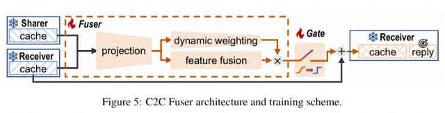 C2C 시스템의 핵심은 한 AI의 캐시를 다른 AI가 이해할 수 있는 형태로 바꿔주는 '캐시 퓨저'라는 장치다. 이는 마치 통역사처럼 한 AI의 생각을 다른 AI의 언어로 번역해준다. 캐시 퓨저는 세 가지 부품으로 구성된다. 첫째, 두 AI의 캐시를 연결해서 변환하는 '프로젝션 모듈'이다. 둘째, 상황에 따라 전달할 정보의 양을 조절하는 '동적 가중치 모듈'이다. 셋째, 각 단계에서 정보를 받아들일지 말지 결정하는 '게이트'다. 게이트는 학습을 통해 어떤 단계에서 다른 AI의 도움이 필요한지 스스로 판단한다.