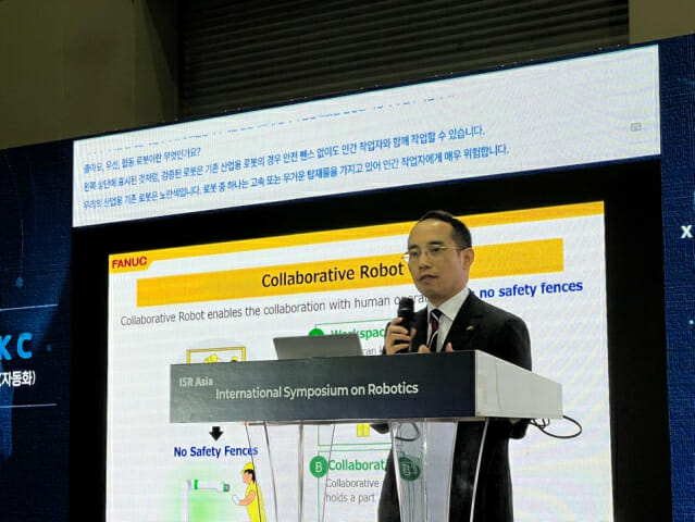 그는 화낙 협동로봇 CRX 시리즈를 중심으로 "안전성·사용 편의성·신뢰성이 협동로봇의 3대 핵심 가치"라고 소개했다.