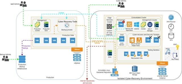 대표 솔루션인 IBM 사이버 리커버리는 백업 데이터와 복구 인프라를 완전히 분리된 에어갭(Air-gap) 환경에 배치해 랜섬웨어나 내부 침해 사고가 발생하더라도 안전한 복구가 가능하도록 설계됐다. 단일 장애 지점을 제거하고, 공격자 접근이 불가능한 격리 구역에서 데이터를 보호하는 것이 특징이다.