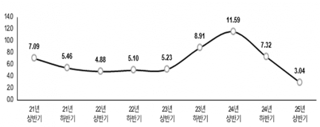 2025년 상반기 스팸 유통현황 조사 결과, 1인당 월평균 수신량과 신고 탐지 결과 모두 전년 동기 및 전반기 대비 뚜렷한 감소세를 보였다.