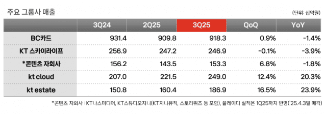 KT클라우드는 전년 동기 대비 20.3% 증가한 2천490억원의 매출을 기록했다. 데이터센터와 AI, 클라우드 사업의 성장세를 이어갔다. 공공 부문을 중심으로 AI 클라우드 사업 수주가 확대되고, 가산 AIDC 완공으로 신규 데이터센터가 확보되면서 DC 및 클라우드 사업 모두 안정적인 매출 흐름이 지속될 전망이다.