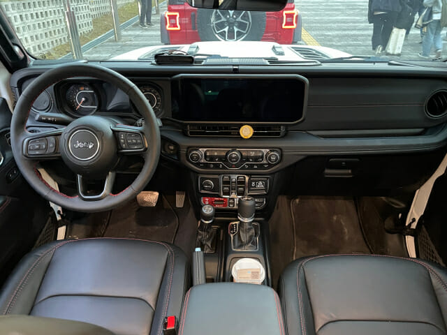 실내는 세대를 거치면서 더욱 현대적으로 변했다. "불편해서 타는 차"라는 말은 이제 옛말이다. 랭글러 루비콘 실내는 12.3인치 터치스크린과 물리 버튼이 조화를 이루며, 필요한 기능만 깔끔하게 담았다.