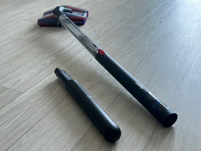 배터리 사용 시간은 최대 30분, 부스트 모드 기준으로는 약 5분 남짓이다. 충전은 약 3.5시간이 소요된다. 용량이 크진 않지만 좁은 공간이나 짧은 청소 루틴을 자주 반복하는 사용자에게는 충분한 수준이다. 충전 중에도 손잡이부 LCD 화면이 점멸하며 남은 전력을 시각적으로 보여준다.