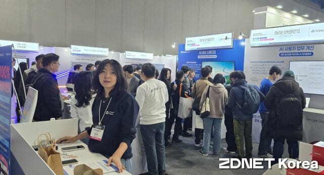 올해로 8회째를 맞는 이번 행사에는 구글 클라우드·KT·LG유플러스·IBM·시스코·노션·아이티센클로잇·시게이트·젠스파크·페르소나 AI 등 국내외 대표 AI 기업이 참여해 솔루션을 선보였다. 코엑스 그랜드볼룸에서는 AI 전문 컨퍼런스가 B홀에서는 국내외 AI 대표기업의 전시가 진행된다.