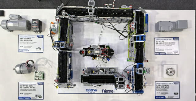 회사는 고강성 감속기 DGS 타입이 적용된 델타로봇과 핵심 기술력인 기어모터를 한눈에 확인할 수 있는 자동화 라인을 미니어처로 제작했다. 브라더코리아가 출품한 델타 로봇은 병렬형 로봇으로 빠른 속도와 정교한 구동이 특징이다.