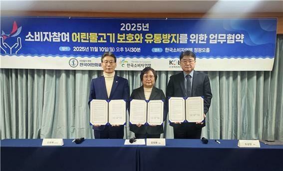 한국온라인쇼핑협회(회장 조성현)는 10일 한국소비자연맹 정광모홀에서 한국소비자연맹(회장 강정화), 전국어민회총연맹(공동대표 김영복)과 함께 ‘2025 소비자참여 어린물고기 보호와 유통 방지를 위한 업무협약’을 체결했다고 11일 밝혔다.