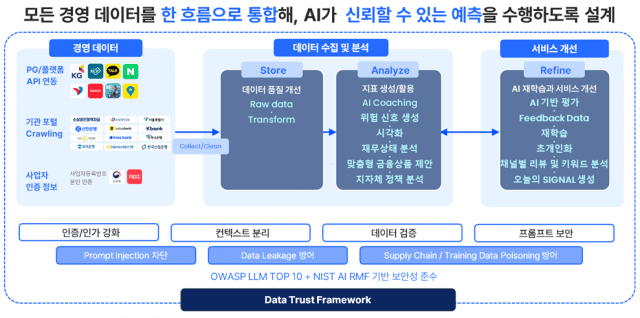 기존에는 사람이 일일이 다양한 채널을 통해 직접 조사하고 관리해야 했던 정보들을 일목요연하게 정리하는 기능을 선보였다. 뿐만 아니라 소상공인의 위기관리를 위해 필요한 조치를 AI가 제안해주는 기능을 제공, 기술력과 기획력 모두에서 높은 평가를 받았다.