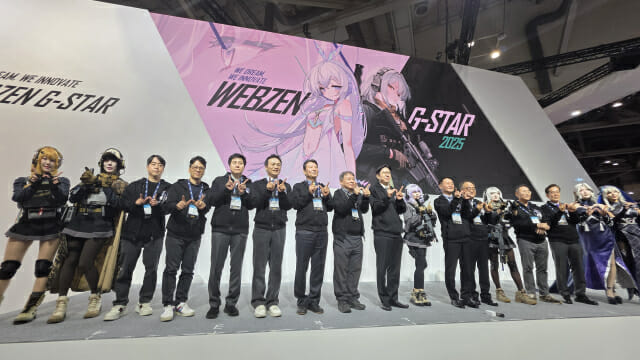 마지막 웹젠 부스에서도 VIP들의 체험이 이어졌다. 놀이동산에 온듯한 느낌을 선사한 웹젠 부스에서 박 시장과 여러 게임사 대표들은 무대에 올라 웹젠의 'W'를 그리며 코스어들과 함께 지스타를 기념했다.