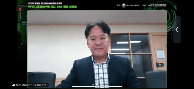 한국인터넷진흥원(KISA)은 개인정보보호위원회(개보위) 12일 '한·유럽연합(EU) 동등성 인정 제도 안내·활용 설명회'를 주제로 2025 글로벌 개인정보 보호 웨비나를 개최했다.