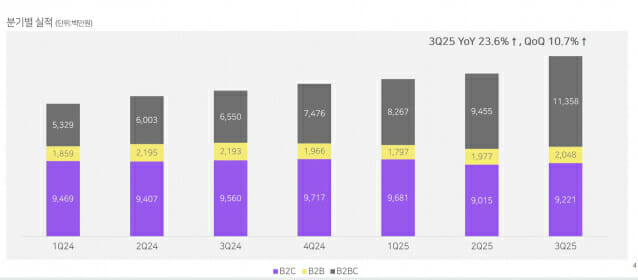 밀리의서재는 올해 3분기까지 14개 분기 연속 성장세를 기록한 배경으로 B2BC 성장을 꼽았다. 밀리의서재는 지난 4월 SK텔레콤과 제휴를 체결하며 국내 통신 3사 고객 모두에게 서비스를 제공할 수 있게 됐다. 이에 따라 통신 제휴를 통한 신규 가입자가 늘어나고 B2BC 채널 매출에도 긍정적인 영향을 미친 것으로 회사는 전망했다.