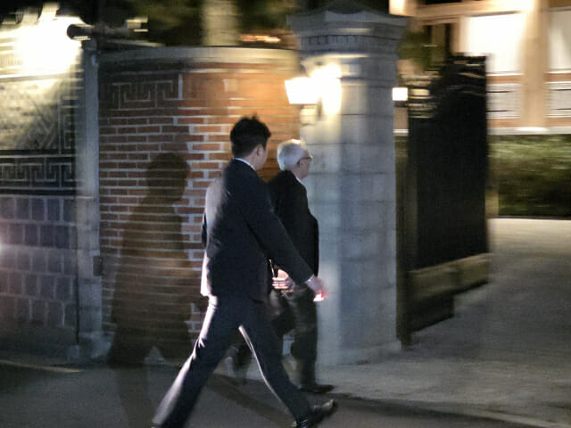 이재용 삼성전자 회장은 13일 오후 서울 한남동 승지원에서 올라 칼레니우스 메르세데스-벤츠 회장과 비공식을 만찬을 가졌다. 이 회장과 칼레니우스 회장이 만난 것은 지난 5월 중국 베이징 댜오위타이에서 열린 ‘중국발전포럼(CDF)’ 이후 약 6개월만이다.