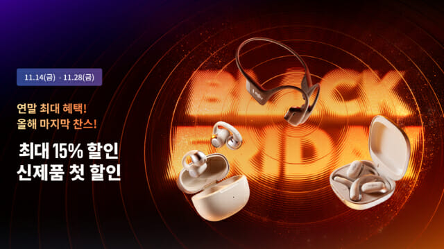 글로벌 오픈형 이어폰 브랜드 샥즈는 연중 최대 쇼핑 혜택을 제공하는 '샥즈 블랙프라이데이' 프로모션을 오는 28일까지 진행한다고 14일 밝혔다.