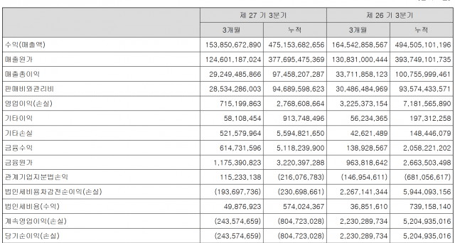 또 투자 지표를 나타내는 투자활동현금흐름은 457억원 손실을 기록했다. 이는 전년 동기 198억원 대비 259억원 이상 늘어난 것이다.