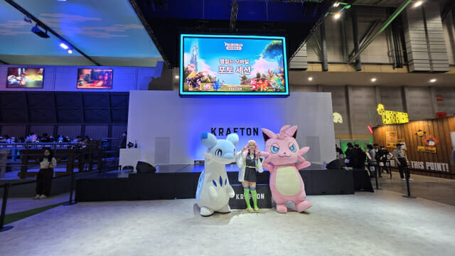 개막 후 첫 주말인 15일 크래프톤 부스는 이벤트 체험과 '팰월드 모바일' 시연을 하기 위해 찾은 관람객들로 인산인해를 이뤘다. 크래프톤은 일본 게임 개발사 포켓페어의 '팰월드' IP(지식재산권)을 기반으로 개발 중인 신작 '팰월드 모바일'을 중심으로 부스를 구성했다.
