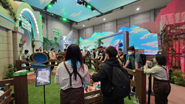 부스는 팰월드의 세계관을 모티브로 한 테마파크형 공간으로 꾸며져 게임 속 콘텐츠를 현실에서 생생하게 체험할 수 있도록 연출됐다. 현장 스탭들 또한 관람객들을 향해 환호하고 함께 웃으며 마치 테마파크에 온듯한 느낌을 선사하고 있었다.