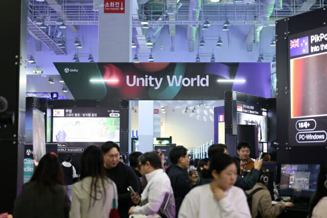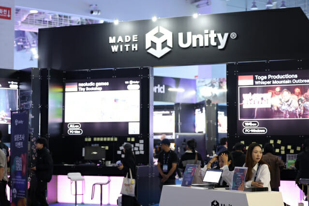 유니티는 제2전시장에 ‘유니티월드’를 꾸리고 한국·미국·독일·프랑스 등에서 출품한 인디게임 33종을 시연했다.