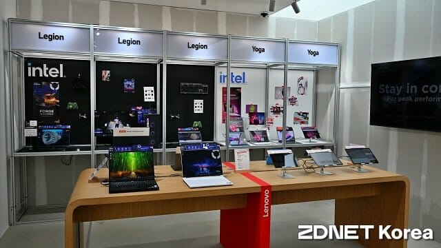 2층에는 인텔 코어 울트라 시리즈2 프로세서 기반 씽크패드·리전·요가·아이디어패드·아이디어센터 등 제품을 배치했다. 키보드·마우스·백팩·어댑터 등 액세서리 라인업도 대규모로 전시해 사용자 종류별·목적별 맞춤 솔루션을 제시했다.