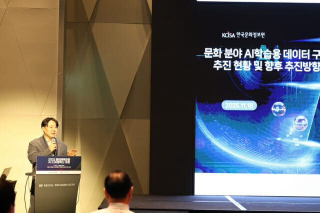 18일 서울 용산 드래곤시티에서 열린 2025 문화체육관광 인공지능 디지털혁신 포럼에서 한국문화정보원 이권수 팀장은 인공지능 시대의 문화데이터 구축 방향을 제시하며 이와 같이 말했다.