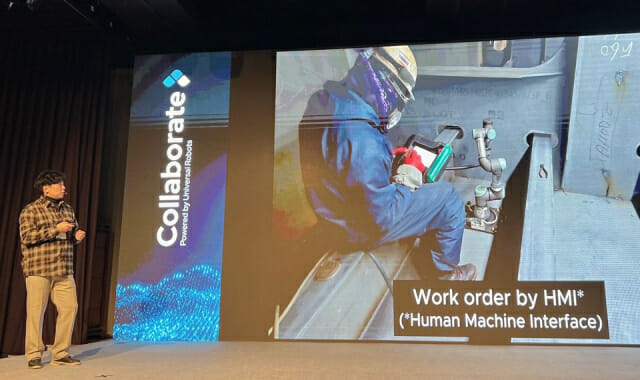 홍지웅 HD현대삼호중공업 책임매니저는 18일 '콜라보레이트 코리아 2025'에서 조선업 현장에 협동로봇이 가져온 변화를 소개했다.