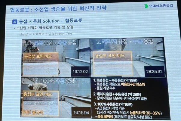 이어 "이 팀에서는 협동 로봇이 없으면 용접을 소화하지 못한다"며, 협동로봇이 이제 셀 공정의 필수 인프라가 됐다고 강조했다.