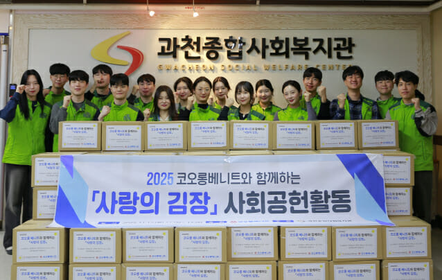 이날 참가자들은 지역 이웃과의 만남을 기대하며 코오롱베니트가 직접 기부한 약 100포기의 김장김치를 직접 담궜다. 조리 과정은 봉사활동 전문 강사 지도 하에 약 3시간 동안 진행됐다. 김장김치는 과천종합사회복지관이 선별한 지역 취약계층 60여 가구에 전달될 예정이다.