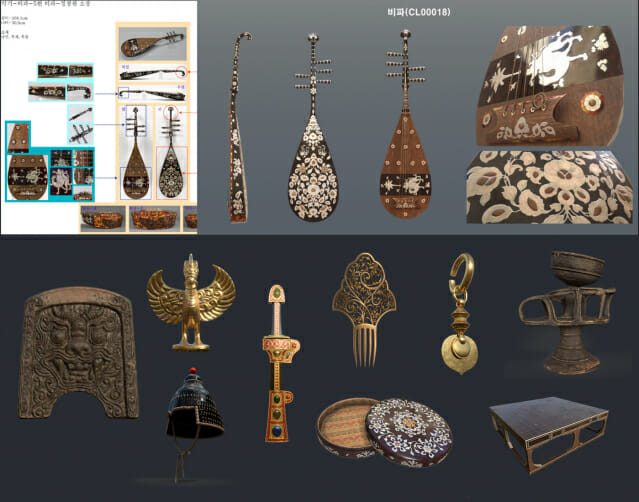 김 대표는 국가유산청 '서라벌 천년 시간여행'사업을 경북연구원을 통해 한국전통문화대학교 박사과정하면서 참여했으며, 고증을 바탕으로 신라시대 복식·장신구·기물 등의 3D 에셋을 제작한 바 있다. 또 박물관 유물 정보를 활용한 문양과 나전칠기 전통 공예의 재질도 3D 데이터로 구현했다