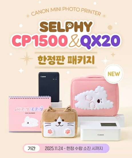 캐논코리아가 24일 '25년 셀피 CP1500 & QX20 한정판 패키지'를 출시했다.