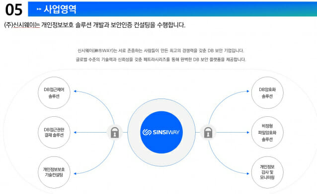 신시웨이 주력인 DB보안은 크게 DB접근제어와 DB암호화 두 분야로 나뉜다. 국내 시장 규모는 두 분야 합쳐 약 5000억으로 추정된다. DB접근제어가 약 2500억, DB암호화가 약 2500억쯤 될 것으로 업계는 보고 있다. 이런 국내시장에서 신시웨이는 DB접근제어 분야는 2위, DB암호화 분야는 선두권에 있다. 특히 파일암호화 분야는 공공 조달 기준 국내 시장 1위다.