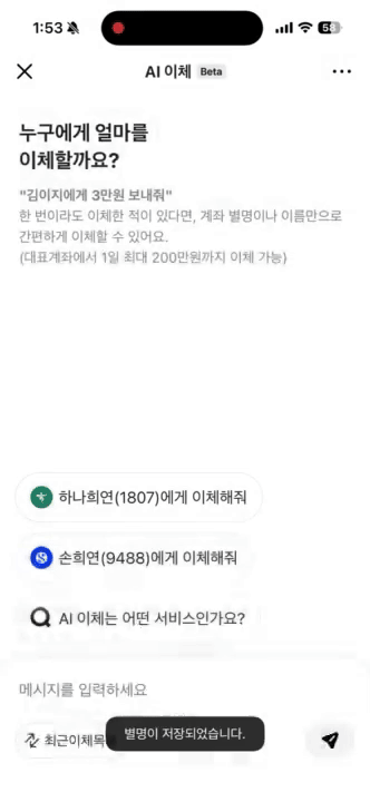 다만, AI 이체가 이체의 속도를 획기적으로 줄였거나 내 말을 '찰떡'처럼 알아듣는데는 아직까진 한계가 있는 것으로 보인다. 모르는 사람이나 첫 송금이 아니고서는 최근 이체 목록이나 자주 쓰는 이체 목록을 탭하는 것이 속도면에서는 훨씬 빠르기 때문이다.
