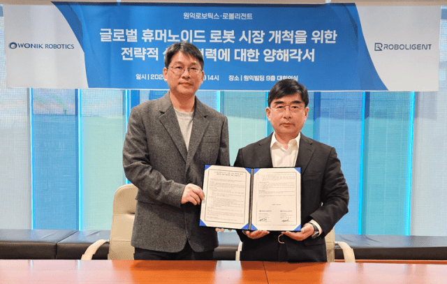 원익로보틱스는 미국 텍사스에 본사를 둔 인공지능(AI) 기반 로봇 개발 스타트업 로볼리전트와 모바일 휴머노이드 로봇 기술 협력을 위한 양해각서(MOU)를 체결했다고 25일 밝혔다.