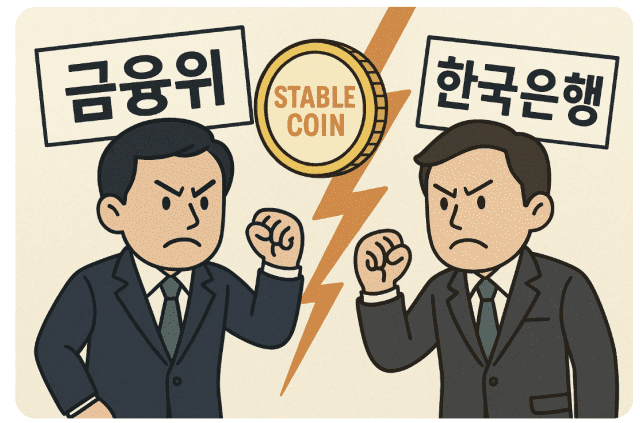 스테이블코인 규제에 대한 금융위원회와 한국은행 간의 갈등이 수면 위로 떠올랐다.