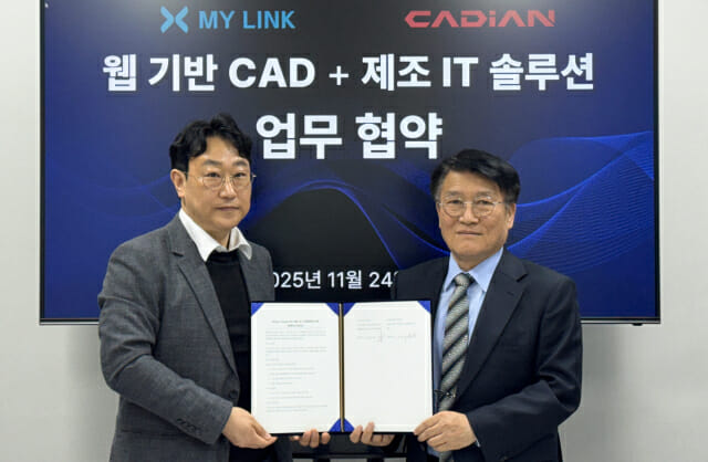 AI 기반 캐드(CAD) 및 디지털트윈 플랫폼 개발사 캐디안(대표 박승훈)은 스마트팩토리·제조 생산 및 자원관리 최적화 솔루션 전문기업 마이링크(대표 박상일)의 ‘LinkBiz’ 플랫폼에 적용되는 웹 기반 2D·3D 모델 뷰어(CADian ViewQ) 기술협력을 위한 양해각서(MOU)를 체결했다고 밝혔다.