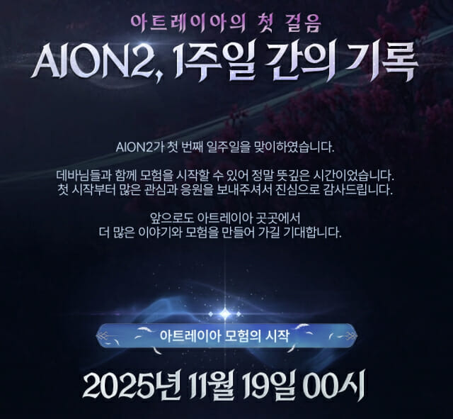 앞서 회사 측은 출시 이틀 기준 아이온2의 한국·대만 일일 평균 활성 이용자 수(DAU)가 150만을 넘어섰다고 밝히기도 했다.
