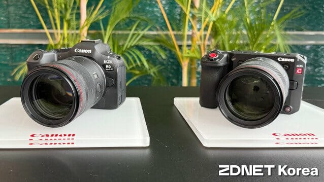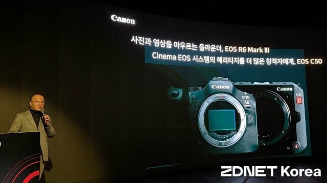 이날 캐논코리아는 영상 수요를 겨냥한 풀프레임 센서 미러리스 카메라 2종을 공개했다. 기동성이 중요한 촬영 환경에서 창작자들의 유연한 환경 구성에 중점을 둔 EOS C50, 화소 수를 3천250만 화소로 늘린 EOS R6 마크Ⅲ 등 두 가지 제품이다.