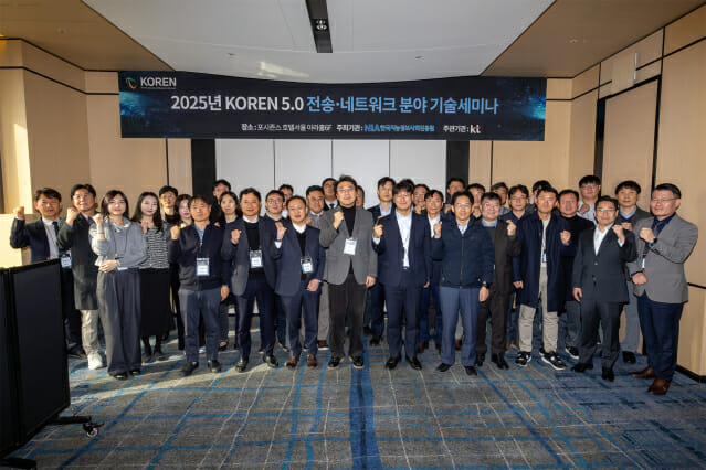 아울러 KT는 NIA와 함께 안정적인 망 운영을 위해 산학연 관계자 간 최신 기술 교류와 협력도 지원하고 있다. 지난달 26일에는 ‘KOREN 5.0 전송·네트워크 분야 기술세미나’를 열어 AI·전송·네트워크 분야의 기술을 공유하고, 내년도 코렌 고도화 방향에 대해 논의했다.