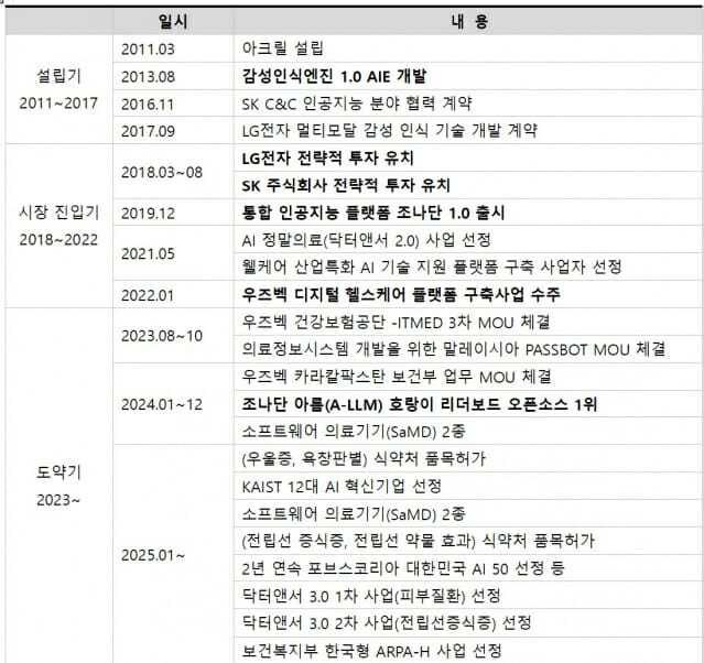 아크릴은 2011년 3월 설립됐다. 이후 감성 인식 AI를 시작으로 GPU 최적화, Agentic-AI 운영 체계, 자체 파운데이션 모델 A-LLM(아름) 개발까지 핵심 기술을 단계적으로 내재화, 단일 제품이 아닌 AI 인프라 생태계를 설계·운영할 수 있는 AX 인프라 기업으로 성장해왔다.