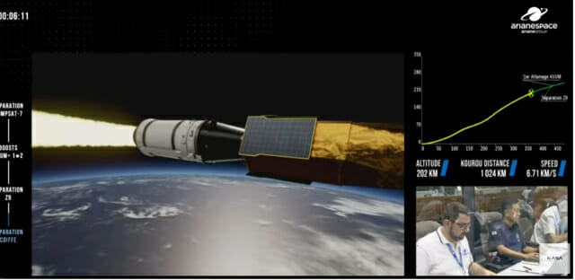 2일 우주항공청은 아리랑7호가 이탈리아 아비오의 베가-C 발사체에 실려 발사됐다. 베가-C는 발사 149초와 275초 때 발사체 1,2단이 각각 분리됐다. 발사 286초와 440초에 페어링과 발사체 3단 엔진이 각각 떨어져 나갔다.