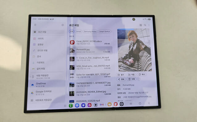 실제 갤럭시 Z 폴드의 화면을 펼쳐 본 결과, 매우 얇은 두께에 태블릿에 준하는 10인치 대형 화면이 시선을 사로잡았다. 무게감은 다소 있었으나, 3단 폴더블폰이라는 점을 감안하면 크게 불편하지 않은 정도였다. 갤럭시 Z 트라이폴드의 무게는 309g이다.