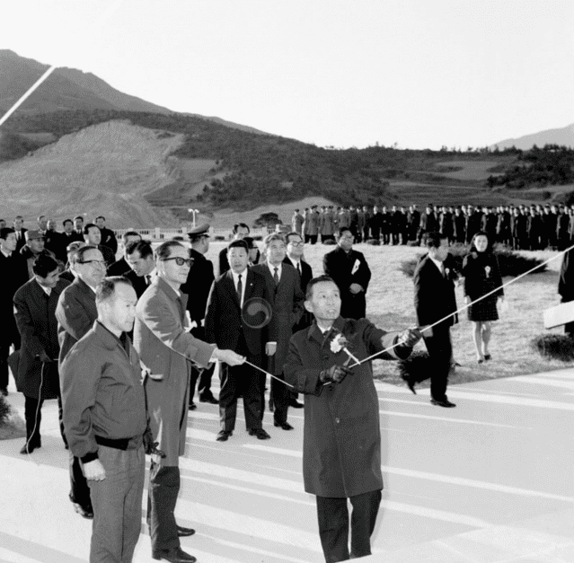 박통과 가장 죽이 맞는 사람은 현대의 정주영이었다. 누구도 경부고속도로 건설에 찬성하지 않았다. 자동차도 몇 대 다니지 않던 시절이었다. 제대로 된 포장길조차 깔려 있지 않는 마당에 국토를 남북으로 관통하는 고속도로 건설이 앞뒤가 맞지 않는다며 야당의 비난과 학계의 비판이 빗발쳤다. 그럼에도 미래학자인 미국의 허드슨 연구소 소장 허만 칸 박사와의 대화가 영감이 되어주었다. 다가올 미래를 예측하여 미리 투자하고 건설해 두면 큰 파급 효과가 있을 것이라며 확신을 얻을 수 있었다. 박통은 산업화의 1단계가 완료되는 10년 후를 내다보고 고속도로 건설을 밀어붙였고, 불도저 같은 정주영은 시련은 있어도 실패는 없다며 신바람이 나서 단군 이래 가장 거대한 대역사를 가장 저렴한 가격으로 가장 빠른 시기에 오로지 국내 기술로만 완성해 낸 것이다. 1970년 7월 7일, 행운의 7이 세 개나 들어있는 길일에 맞추어 경부고속도로의 준공식이 열렸다. 박정희는 그 뻥뻥 뚫린 신작 도로에 가장 좋아하는 막걸리를 뿌리며 뿌듯함을 감추지 못했다. 이 국토의 대동맥이야말로 인간의 피와 땀과 의지의 결정으로써 이루어진 공사요, 우리 민족의 피와 땀과 의지로서 이루어진 하나의 민족적인 대 예술작품이라고 더없이 자랑스러워했다.