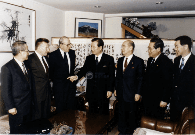 박정희가 정권을 인수했을 때는 나라 꼴을 폐가가 빗대었다면, 김대중은 IMF 사태 이후 나라살림을 떠맡았을 때 금고가 텅 비어 있다며 목을 메었다. 박통이 잿더미의 제로에서 우뚝한 하나로 서는 초석을 다져주었다면, DJ는 제2의 건국운동을 일으켜 제3의 물결을 타고 오를 수 있는 반석을 깔아주었다. 흥미롭게도 김대중 곁에는 박통의 정치적 분신이었던 김종필과 경제적 분신이었던 박태준과 자주국방의 설계자였던 임동원이 함께 서 있었다. 새천년의 갈림길, 용서와 화해와 포용으로, 화백(和白)의 정신으로 연대와 연합과 합방의 새 정치와 큰 정치를 도모했던 것이다. 응답하라 1998, 세기말의 대한민국으로 옮겨간다.